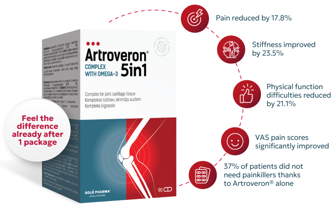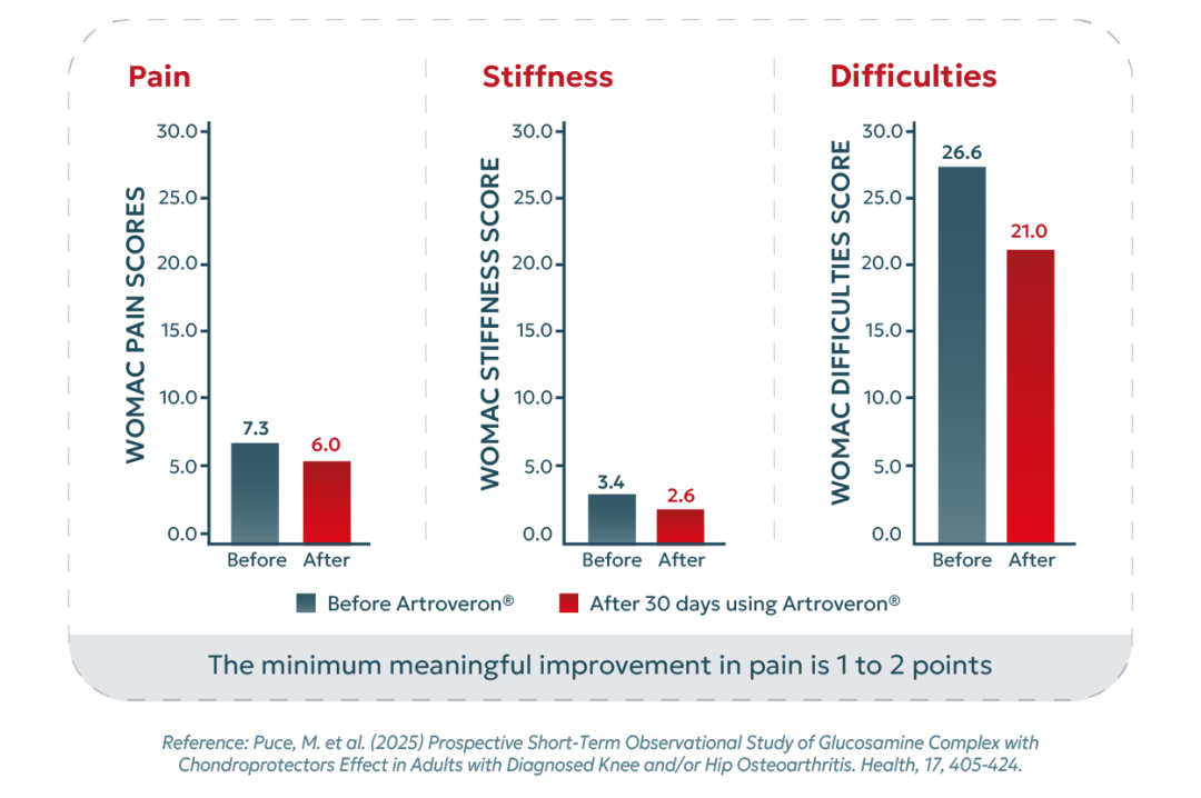 Backed by clinical research, Artroveron® 5in1 has shown measurable outcomes within 30 days. In a prospective observational study, patients experienced: